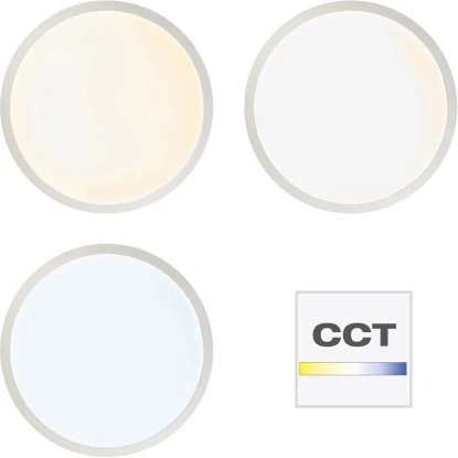 Das Brilliant LED-Deckenaufbau-Paneel Abie Ø 60 cm Weiß kommt überall dort zum Einsatz wo hohe Leuchtkraft gefragt ist. Modern, schlicht und gleichzeitig energieeffizient eignet es sich nicht nur für Arbeitsbereiche, auch in Wohn- und Schlafbereichen macht es eine ausgezeichnete Figur. Die integrierten LEDs zeichnen sich bei hoher Lichtleistung durch einen geringen Stromverbrauch aus. Das eingesetzte Leuchtmittel ist wechselbar. Zum Lieferumfang der Leuchte gehört auch eine Fernbedienung. Damit lassen sich die zahlreichen Funktionen steuern. Die Helligkeit kann mit ihrer Hilfe stufenlos verändert werden. Diese Möglichkeit erweist sich in vielen Fällen als praktisch und ist auch gerade deshalb sehr nützlich, weil die Lichtausbeute auf höchster Leistungsstufe sehr hoch ist. CCT definiert die Farbtemperatur einer weißen LED und wird in Kelvin angegeben. Im Spektrum von warmweiß bis kaltweiß kann die Lichtfarbe individuell je nach gewünschtem Ambiente gewählt werden. Das Hauptlicht ermöglicht eine wirkungsvolle Beleuchtung durch die Auswahl von verschiedenen RGB-Lichtfarben. Die Nachtlichtfunktion der Leuchte erspart Ihnen das Tappen im Dunkeln. Der große Durchmesser des Aufbaupaneels von 60 Zentimetern erhellt auch größere Räume problemlos. Sämtliches benötigtes Installationsmaterial ist im Lieferumfang schon inbegriffen. Im Lieferumfang sind auch die Batterien zur Inbetriebnahme der Fernbedienung inbegriffen.
