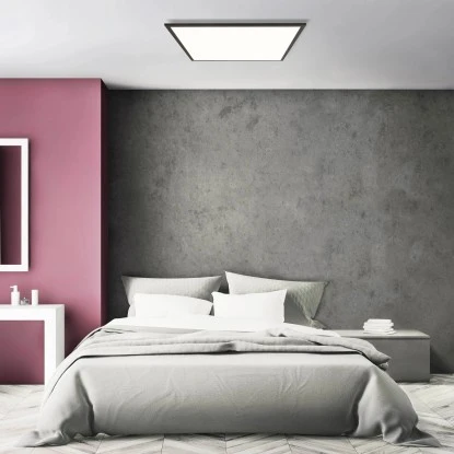 Das Brilliant LED-Deckenaufbau-Paneel Buffi 60 cm x 60 cm Schwarz hat ein sehr einfaches Aussehen, denn es wurde auf jegliche überflüssige Verzierung verzichtet. Diese Leuchte sorgt durch die flächige Verteilung des Lichts für ein besonders angenehmes Lichtbild und gleichmäßige Raumausleuchtung in Deinem Zuhause. Vielseitig in den Einsatzmöglichkeiten, kann der erste Eindruck jedoch täuschen. Sie passt wunderbar in Wohnzimmer oder kann in Fluren und Küchen genutzt werden. Diese Leuchte ist mit energiesparender und langlebiger LED-Technik ausgestattet. Das neutralweiße Licht sorgt für eine sachliche, aber dennoch angenehme Atmosphäre. Durch kaltweißes Licht ist die Leuchte perfekt für das Arbeiten im Homeoffice oder zum Kochen. Mit 5200 Lumen ist das 1-flammige Aufbaupaneel besonders hell und damit entworfen, um ganze Räume ohne weitere Lichtquellen allein zu beleuchten. Im Lieferumfang enthalten ist sämtliches notwendiges Installationsmaterial.