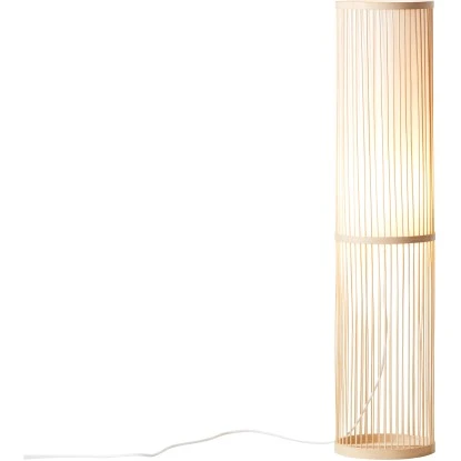 Die Brilliant Standleuchte Nori 1-flammig Natur und Weiß macht auch in Ihrem Wohnzimmer einen freundlichen Eindruck. Als Zusatz- oder Akzentbeleuchtung erschafft sie auch in Schlaf- und Esszimmern eine stimmungsvolle Beleuchtung. Die hervorragend verarbeiteten Textilien sorgen für eine wohnliche Lichtgestaltung. Das klassische Design steht für Gemütlichkeit und Harmonie und passt zu jedem Wohnambiente. Hergestellt aus dem nachwachsenden und dadurch umweltfreundlichen Rohstoff Bambus erzeugen Sie mit dieser Leuchte eine gemütliche Wohnatmosphäre in Ihrem Zuhause. Das natürliche Material hat eine besonders gemütliche Ausstrahlung. Der eingesetzte E27-Sockel ermöglicht das einfache Wechseln des Leuchtmittels. Für Normallampen ausgelegt, sind im Lieferumfang jedoch keine Leuchtmittel enthalten. Auch energiesparende LED-Leuchtmittel können eingesetzt werden. Setze eine energiesparende Glühbirne in diese Leuchte ein, denn damit tust Du nicht nur der Umwelt etwas Gutes, sondern sparst auch Strom. Die Leuchte ist mit einem Fußschalter ausgestattet. Die Stehleuchte hat eine Zuleitung von etwa 3,1 Metern in der Länge.