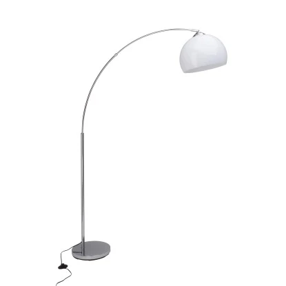 Die bogenförmige Stehleuchte Vessa ist ein eleganter Lichtspender. Im Wohnzimmer ist sie eine ansprechende Ergänzung zur Hauptbeleuchtung. Durch ihren ausladenden Arm reicht sie mit ihrem Licht weit in den Raum hinein und kann so optimal hinter einem Sofa platziert werden. Diese Bogenleuchte vereint nostalgische und moderne Elemente und erzeugt so einen zeitgemäßen Wohnstil. Die Leuchte eignet sich für den Einsatz von Normallampen. Leuchtmittel sind im Lieferumfang nicht enthalten. Auch energiesparende LED-Leuchtmittel können verwendet werden. Die Leuchte ist mit einem Fußschalter ausgestattet. Mit 1,66 m in der Höhe ist sie nicht zu übersehen.