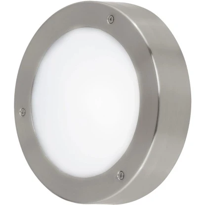 Die Eglo Wand- bzw. Deckenleuchte der Serie Vento 1 aus der Outdoor-Kollektion ist aus Edelstahl und weißem Kunststoff gefertigt. Sie ist mit dem Schutzgrad IP44 sowie einem fest verbauten LED-Leuchtmittel, das warmweißes Licht spendet, ausgestattet.