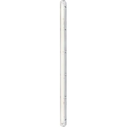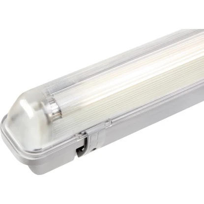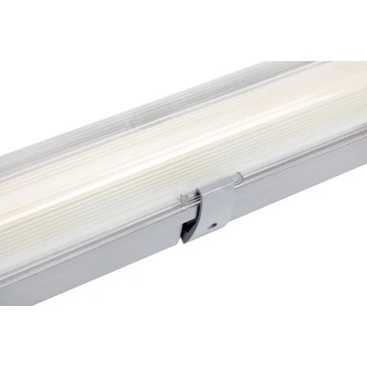 Die Feuchtraumleuchte ist mit einer langlebigen, auswechselbaren Leuchtstoffröhre ausgestattet, die einen kühlen, weißen Lichtstrahl erzeugt. Mit einer Lichtleistung von 3.100 Lumen ist sie ideal, um große Räume effektiv auszuleuchten.