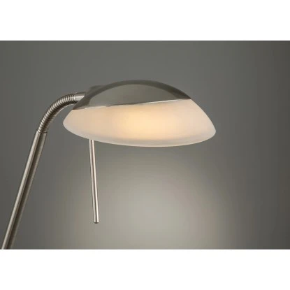 Die nickelfarben matte Oberfläche mit einem Alabasterfarbenen Glas wirkt modern. Mit einer Ausladung von 40 cm und einer Höhe von 60 cm ist dieser Artikel für Flure oder Wohn- und Essbereichen bestens geeignet. Schönes Licht ist garantiert. Durch einen Sensordimmer direkt an der Leuchte ist stufenloses Dimmen für die Gemütlichkeit gegeben.