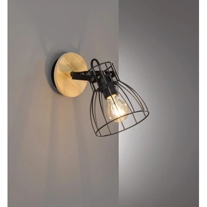 Die Fischer & Honsel Wandleuchte Die vervollständigt ihr Lichtambiente mit natürlicher Ausstrahlung und klassischer Formgebung. Natürliche Ausstrahlung und schön verdrehte Welt. Die Leichtigkeit der Elemente. Besinnung auf die Natur, wo sich Holz mit Design verbindet und Lichtpunkte setzt. Metall schwarz matt in Kombination mit warmem Holz gibt jedem Raum ein wohnliches Ambiente. Ob im Flurbereich mehrfach platziert, oder im gesamten Wohnbereich mit den anderen Artikeln dieser Serie kombiniert macht diese extravagante Leuchte eine gute Figur. Durch die Verstellbarkeit der Körbe lassen sich individuelle Lichtpunkte setzen und zaubern so spannende Schattenspiele an Wand und Decke.