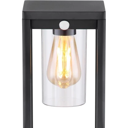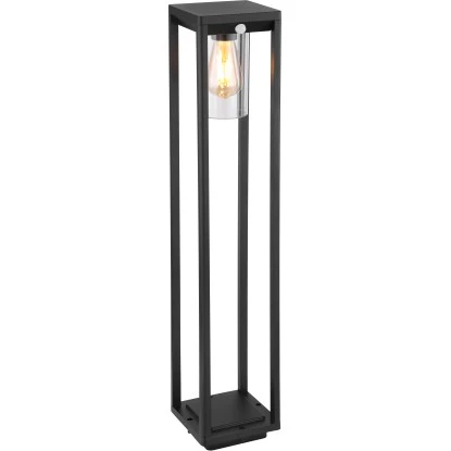 Diese Außenlampe aus der Candela-Serie ist eine wunderschöne Ergänzung für Ihren Garten, Ihre Terrasse oder Ihren Balkon. Die 80 cm große Außenleuchte besteht aus einen quaderförmigen, schwarz-matten Aluminium-Druckgussrahmen (15,5 cm x 15 cm), welcher innen mit einer E27-Fassung versehen ist. Diese wird von einem klaren Kunststoffzylinder umrahmt und kann mit einem passenden LED-Leuchtmittel Ihrer Wahl bestückt werden. Dadurch haben Sie die Möglichkeit, Lichtfarbe und Helligkeit individuell zu bestimmen. Außerdem verfügt die Außenleuchte über einen inkludierten Bewegungsmelder. Durch weitere Modelle der gleichen Serie können Sie in Ihren Außenbereich für ein stimmungsvolles Ambiente sorgen.