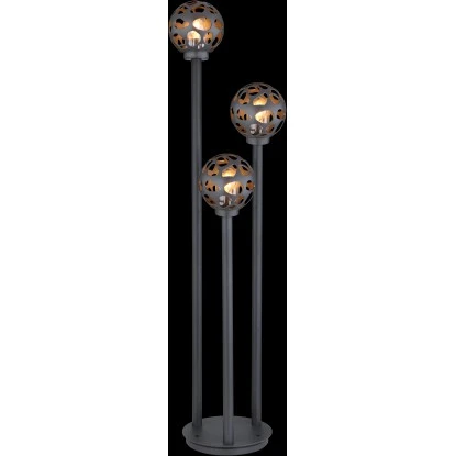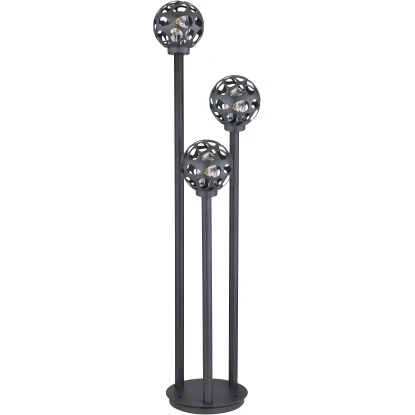 Die Außenlampe aus der Hilario-Serie von Globo besticht durch ihr stilvolles Design aus anthrazitfarbenem Edelstahl und Aluminiumdruckguss. Die 162 cm große Außenleuchte besteht aus einem runden Sockel, an dem drei Stäbe unterschiedlicher Größe fixiert sind. Die verfügen über drei Kugeln mit formschönen Stanzungen, welche die von klarem Kunststoff bedeckten E27-Fassungen umfassen. Die können mit passenden LED-Leuchtmitteln Ihrer Wahl bestückt werden, wodurch Sie in der Lage sind, Lichtfarbe und Helligkeit individuell zu bestimmen. Durch mehrere Artikel der gleichen Serie können Sie in Ihrem Außenbereich für eine gemütliche Atmosphäre sorgen und das Gesamtbild komplettieren.