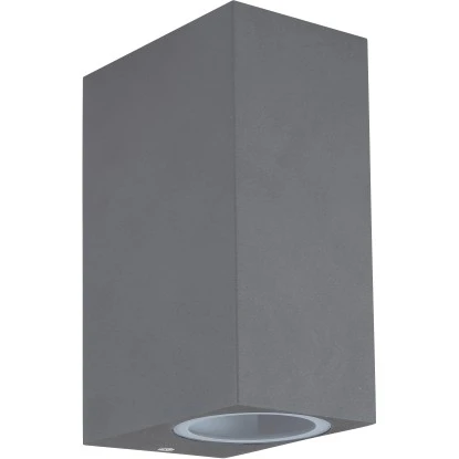 Die moderne Außenwandlampe aus der Veronika-Serie von Globo überzeugt durch ihr schlichtes Design aus anthrazitfarbenem Aluminiumdruckguss. Die 15 cm große Außenleuchte besteht aus einem Aluminiumquader, der an der Ober- und Unterseite mit jeweils einem GU10-Leuchtmittel Ihrer Wahl bestückt werden kann, die dann von klarem Glase bedeckt werden. Dadurch sind Sie in der Lage, Lichtfarbe und Helligkeit individuell zu bestimmen. Durch mehrere Artikel der gleichen Serie können Sie Ihren Außenbereich stilvoll in Szene setzen und das Gesamtbild komplettieren.