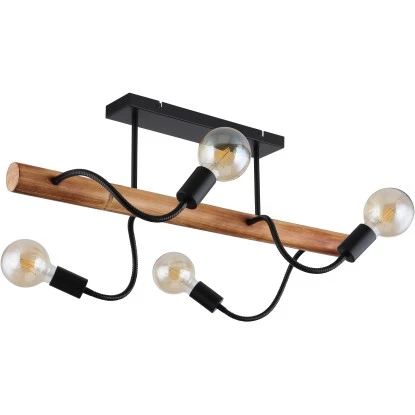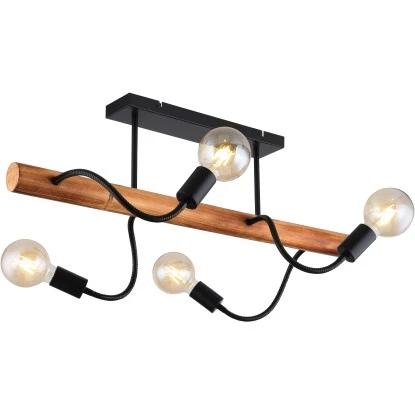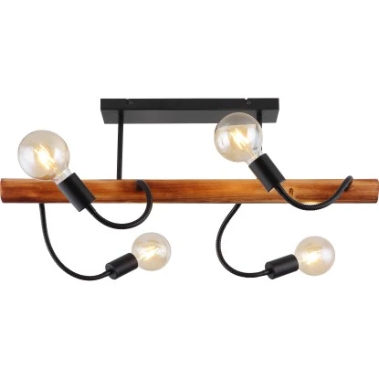 Globo Deckenleuchte Juliane 4-flammig Metall Schwarz Holz Dunkelbraun