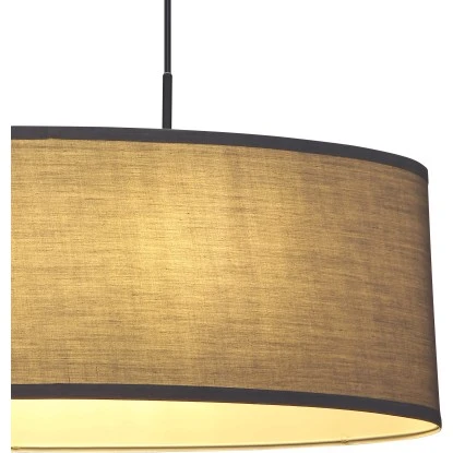 Diese bezaubernde Pendelleuchte begeistert durch Ihr Design. Ein 75 cm langer und 22 cm breiter Schirm in der Farbe Anthrazit bedeckt zwei E27 Fassung welche an zwei schwarzen Metallstäben 1,2m von der Decke hängen. Die E27 Fassungen, ermöglichen Ihnen die freie Wahl an Lichtfarbe und Helligkeit, bis zu einer maximalen Leistung von 40 Watt.
