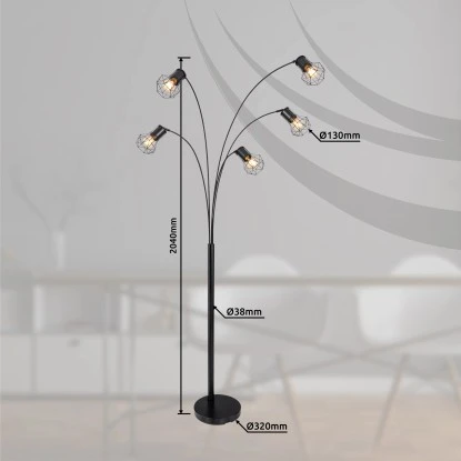 Globo Stehlampe Priska 5-flammig Schwarz Matt 740 X 800 X 2040 Mm