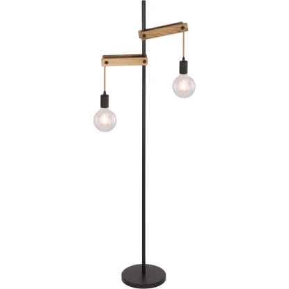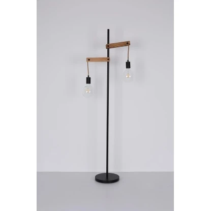 Die Stehleuchte Visso präsentiert sich schlicht und stylish. Die Materialkombination dieser 1,5 Meter großen Stehlampe aus Holz und mattschwarzem Metall wirkt neutral und zeitlos. Die zwei an Hanfseilen hängenden E27-Fassungen können nach Belieben bestückt werden, somit entscheiden Sie selbst über Lichtfarbe und Lichtstärke. Aufgrund ihrer Stromersparnis und Langlebigkeit empfehlen wir LED-Lampen. Dieses Modell ist mit einem Ein/Aus-Schalter ausgestattet.