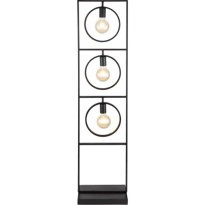 Die Stehlampe aus der Markus-Serie von Globo ergänzt Ihre Innenräume um eine stilvolle Lichtquelle. Die 135,5 cm große Stehleuchte besteht aus einem schwarz-matten Metallrahmen, der an einem Metallsockel fixiert ist und in vier Felder aufgeteilt ist. Die obersten drei davon, sind mit von schwarz-matten Metallringen umrandeten E27-Fassungen versehen, welche Sie mit passenden Leuchtmitteln Ihrer Wahl bestücken können. Dadurch haben Sie die Möglichkeit, Lichtfarbe und Helligkeit individuell anzupassen. Zudem verfügt die Leuchte über einen Schalter, mit dem sie bequem ein- und ausgeschaltet werden kann. Durch weitere Modelle der gleichen Serie können Sie das Gesamtbild in Ihren vier Wänden komplettieren.