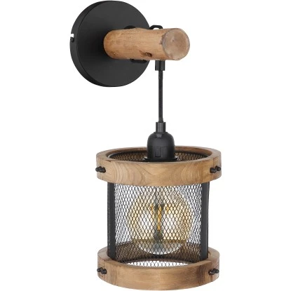 Diese zeitlose Wandleuchte begeistert durch ihr schönes Design und zieht Blicke auf sich. Die Leuchte besteht aus einem Schirm mit Holzrahmen und einem Metallgeflecht und einer E27 Fassung. Mit einem Überhang von 23 cm ist diese an einem schwarzen Kabel und einem Holzstamm befestigt. Mittel der E27 Fassung können Sie selbst, bis zu einer maximalen Leistung von 60 Watt, über Ihr Leuchtmittel bestimmen.