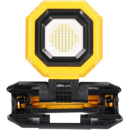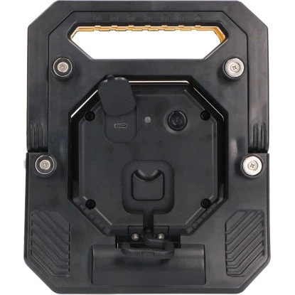 Die LED-Akku-Arbeitsleuchte mit Lithium-Ionen-Akku 24,42 Wh punktet mit vielfältigen Befestigungsmöglichkeiten: stehend, hängend mit Hilfe des beigefügten Hakens, an magnetischen Oberflächen mit Hilfe der vier starken Magneten auf der Rückseite und klemmbar für Rohre bis 51 mm. Sie ist eine getrennt bewegliche und drehbare Lichtquelle mit Drehsockel, besitzt eine Batterieanzeige und ist staub- und spritzwassergeschützt, was sie ideal für Baugerüste und Arbeitsplätze macht. Sie ist aufladbar über USB und die Ladezeit beträgt 4 Stunden.