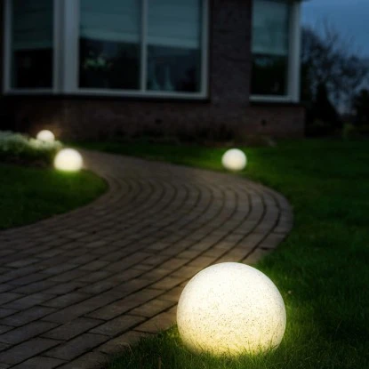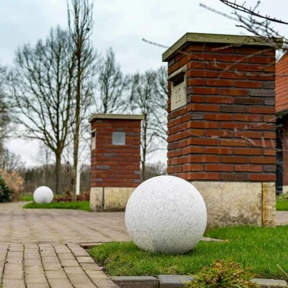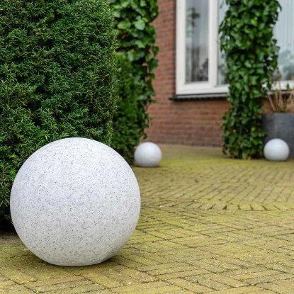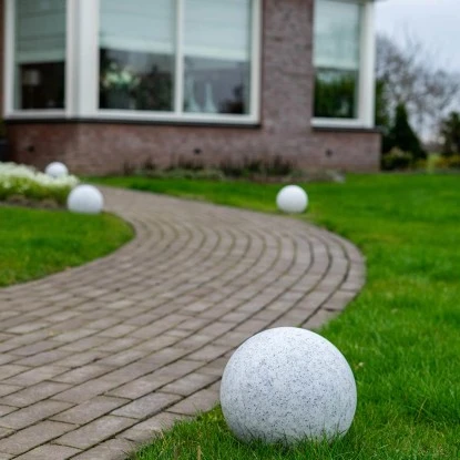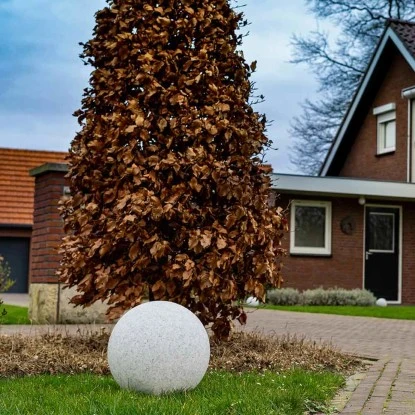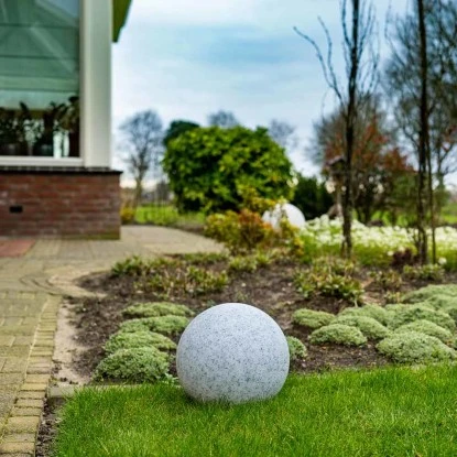 Das LED Bodenlicht Siam 4,5 W 470 lm 2700 K IP65 E27 mit Sensor Grau ist eine schöne Bodenlampe (20 cm) in Form einer Kugel, die einfach am Boden zu befestigen ist. Durch den Tag-/Nachtsensor geht die Lampe automatisch und gibt ein warmes atmosphärisches Licht im Garten ab.