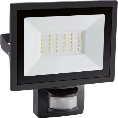 Mit seiner klassischen Optik in Schwarz lässt sich der LED-Strahler in jeden Außenbereich integrieren. Mit ihrer kaltweißen Lichtfarbe sorgen die LEDs für optimale Lichtverhältnisse in Ihrem Garten. Durch die Leistung von 30 W und den Lichtstrom von 2.550 lm hat der Strahler eine starke Leuchtkraft. Zu den weiteren Vorteilen der LED-Technologie gehören ein niedriger Energieverbrauch sowie eine geringe Wärmeentwicklung. Ausgestattet mit einem Sensor, schaltet sich der LED-Strahler bei Bewegungserkennung automatisch an. Die Gesamtmaße betragen 18,5 cm x 16 cm x 6,5 cm (H x B x T).