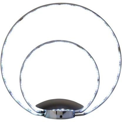 Die dekorative Tischleuchte Marburg ist aus hochwertigem Metall in Chrom-Optik gefertigt. Die im inneren des Kreises angebrachten LEDs sind mit einem Farbwechsler versehen und können bequem per Fernbedienung gesteuert werden. Sie können zwischen verschiedenen Programmen wählen.