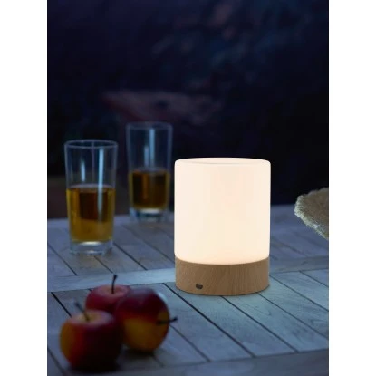 Zur Beleuchtung kommen sechs warmweiße und fest integrierte LEDs zum Einsatz, die mit 250 lm und 2.700 bis 3.000 K überzeugen. Die Leuchte verfügt über eine Lebensdauer von 20.000 Stunden. Der eingebaute Schalter sorgt für eine einfache und schnelle Bedienung. Mit ihm kann die Leuchte zudem in 3 Stufen gedimmt werden. Über das enthaltende USB-Ladekabel kann sie aufgeladen und anschließend flexibel platziert werden. Dank der Schutzart IP 44 ist die Tischleuchte spritzwassergeschützt.