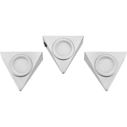 Mit der LED-Unterbauleuchte in Dreiecksform schaffen Sie eine ebenso elegante wie praktische Beleuchtung für Ihre Küchenarbeitsplatte oder den Schrankinnenraum. Sie können das 3er-Set entweder in den Kleiderschrank, die Vitrine oder unter die Küchenoberschränke montieren. Die Gehäuse der einzelnen Spots sind hochwertig in Metall ausgeführt und besitzen eine silberne Farbgebung mit matter Oberfläche. Sie sind für alle trockenen Innenbereiche geeignet.