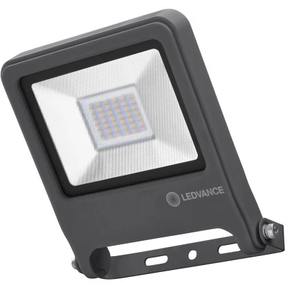 Die Ledvance LED-Außenleuchte Endura Flood 30 W 4000 K Dunkelgrau ist eine sehr helle und funktionelle LED-Außenleuchte. Sie produziert einen symmetrischen Ausstrahlungswinkel von 110 ° x 110 °. Außerdem besitzt sie einen Montagebügel mit Rotationsbereich von bis zu 180 °. Sie ist dank der Schutzart IP65 für den Außenbereich geeignet und hält Umgebungstemperaturen bei Betrieb von -20 bis +45 °C aus. Für die Installation ist der Anschluss über ein Kabel (1 m) und eine Verdrahtung erforderlich.