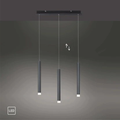 Leuchten Direkt LED-Pendelleuchte Bruno 3-flammig Schwarz 55 X 120 Cm