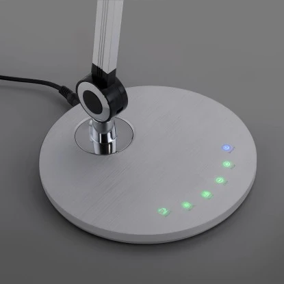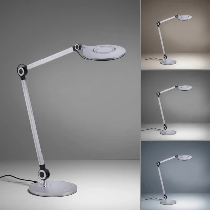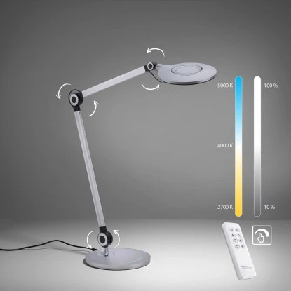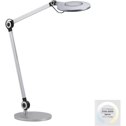 Die Tischleuchte aus der Serie Niklas ist mit einem 3-Stufen CCT-Farbmanagement ausgestattet, mithilfe dessen Sie die Lichtfarbe von warmweiß (3000 Kelvin) über neutralweiß (4000 Kelvin) bis hin zu kaltweiß (6500 Kelvin) einstellen und Ihren Bedürfnissen entsprechend anpassen können. Zusätzlich ist die funktionelle Schreibtischleuchte mit einem Touchdimmer versehen, über den Sie die Tischleuchte ganz einfach stufenlos dimmen können. Für eine Vielzahl von Variationsmöglichkeiten sorgen die drei verbauten Gelenke, durch welche die Leuchte dreh- und schwenkbar wird. Durch die klassische Optik fügt sich die vielseitige Schreibtischlampe in viele Wohnstile hervorragend ein.