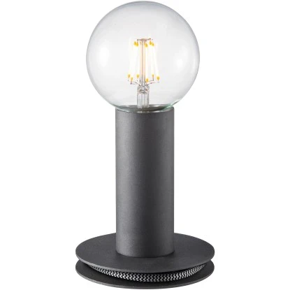 Die schlichte Tischleuchte Turn Me ist vielseitig einsetzbar. Die aus Stahl gefertigte Leuchte in der Farbe Schwarz wird ohne ein Leuchtmittel geliefert. Sie können die Leuchte mit einem E27 Leuchtmittel ganz nach Ihrem Geschmack bestücken. Einen besonderen Clou verleiht man der Leuchte mit der Verwendung eines Filament-Leuchtmittels. Per Schnurschalter kann man die Leuchte bequem an- und ausschalten. Die Tischleuchte hat im Sockel eine Spalte, in die man das überschüssige Kabel ausrollen kann, damit es nicht unnötig im Weg ist. Durch das schlichte Aussehen findet die Leuchte fast überall einen Platz in Ihren Wohnräumen. Die Leuchte hat eine Länge und Breite von 12 cm und eine Höhe von 14,1 cm.
