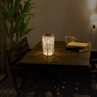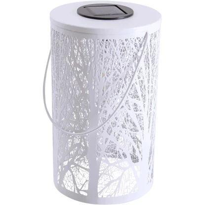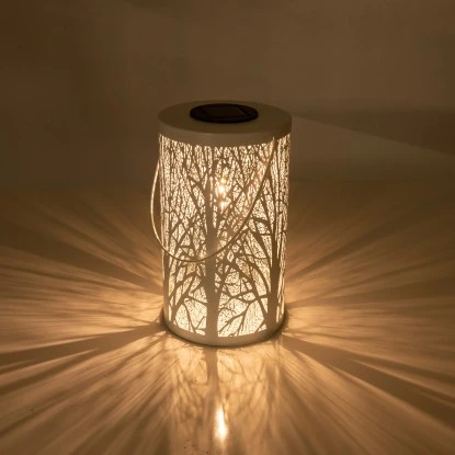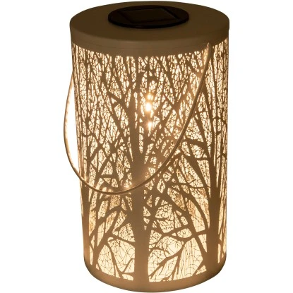 Mit der LED-Deko Solarleuchte von Näve in weiß sorgen Sie für tolle Lichtspiele in Ihrem Garten, der Terrasse oder Ihrem Balkon. Im Inneren der Dekoleuchte befindet sich eine LED, die für ein warmweißes Licht sorgt. Das Waldmotiv-Muster im Lampenschirm wirft tolle, aufregende Schattenspiele an die Wand. Die Leuchte hat eine Höhe von 20 cm, eine Länge von 12 cm und eine Breite von 12 cm. Über die Sonnenstrahlung lädt das Solarmodul den Akku auf und sorgt für gemütliche Abendstunden in Ihrem Garten.