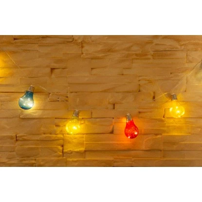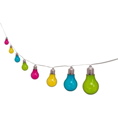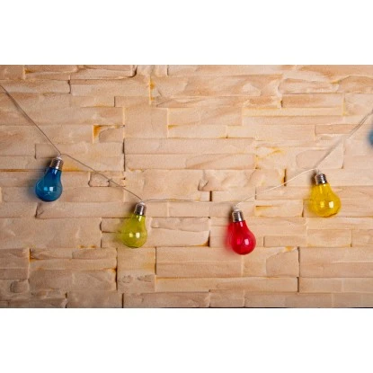 Die 10er-LED-Solar Außenlichterkette von Näve schmückt mit ihren 10 bunten Glühlampen, die jeweils einen Durchmesser von 6 cm haben, jeden Garten. Tagsüber sorgt die Lichterkette mit ihren knallbunten Glühbirnen für eine fröhliche Sommerstimmung. Abends verzaubern die Birnen mit ihrem angenehm warmen bunten Licht. Die Lichterkette darf auf keiner guten Gartenparty fehlen. Dank des Solarbetriebs verbraucht die Leuchte keinen Strom und man muss sich keine Gedanken über das Aufladen eines Akkus oder das Wechseln der Batterien machen.
