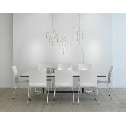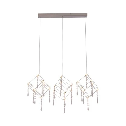 Die wunderschöne LED-Pendellampe Araneus ist mit ihrem schlichten, aber dennoch auffälligen Design ein echter Hingucker. Die Würfel haben jeweils eine Seitenlänge von 15 cm und 15,5 cm. Die Pendellampe hat eine Gesamthöhe von 150 cm und eine Länge von 80 cm. Mit ihren 3000K strahlt die Leuchte ein angenehmes, warmweißen Licht aus. Im eingeschalteten Zustand entsteht durch die Kristallanhänger ein faszinierendes Lichtspiel.