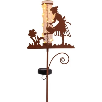 Der LED-Solar-Erdspieß Regenwassermesser von Näve ist ein echter Hingucker in jedem Garten. Das süße Design von einem Mädchen, welches eine Blume gießt, wirkt liebevoll und verzaubert jeden Betrachter. Bei Nacht leuchtet eine um den Regenwassermesser geschwungene Lichterkette im Hintergrund des Motivs. Dank des Solarbetriebs verbraucht die Leuchte keinen Strom und man muss sich keine Gedanken über das Aufladen eines Akkus oder das Wechseln der Batterien machen.
