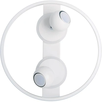 Die Näve LED-Deckenlampe Ronda ist in einem modernen Design gestaltet. Sie ist mit formschönen LED-Ringen sowie mit zwei beweglichen kugelförmigen Spots ausgestattet. Die einzeln verstellbaren Spots sind mit chromfarbenen Halterungen an der Näve Deckenlampe befestigt. Die Näve Deckenlampe Ronda hat einen Durchmesser von 40 cm und ist ca. 15,5 cm hoch. Sie ist aus Eisen, Acryl und mattweißem Silikon hergestellt. Mit ihrer Lichtfarbe in warmweiß sorgt die Näve Deckenlampe Ronda für eine angenehme Atmosphäre im Raum. Sie wird sowohl im Wohnbereich als auch in Büros oder Geschäftsräumlichkeiten zum attraktiven Blickfang. Als energiesparende Leuchtmittel kommen 2xGU 10 mit je max. 5 Watt zum Einsatz.
