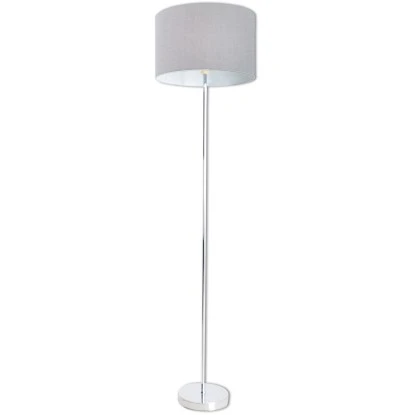 Die formschöne Stehleuchte New York in Grau sollte in einem modernen und zeitgerechten Wohnraum nicht fehlen. Mit einem Schirmdurchmesser von 34,5 cm und einer Gesamthöhe von 160 cm ziert sie optimal den Wohnraum und sorgt für einen dezenten und angenehmen Hingucker. Das eindrucksvolle Zusammenspiel von Metall und Textil zeichnet diese elegante Stehleuchte aus.
