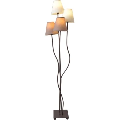 Die Stehleuchte Twiddle verfügt über vier geschwungene Arme mit vier Lampenschirmen. Die Gesamthöhe beträgt 138 cm und das Zusammenspiel aus Metall und Textil macht diese Lampe zu einem schönen aber dennoch dezenten Hingucker in Ihrem Zuhause. Über einen Fußschalter können Sie die Leuchte bequem bedienen.