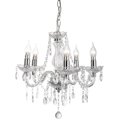 Der klassische Kronleuchter Marie wirkt auch in jeder Umgebung immer noch stilvoll und passend. Geeignet für vier E14-Leuchtmittel erhellt er jeden Wohnbereich. Zur Auswahl stehen für den Kronleuchter Marie die Ausführungen in schwarz und transparent. Mit einem Durchmesser von 48 cm wirkt er zudem noch nicht allzu aufdringlich.