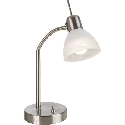 Die Tischleuchte Daytona findet sowohl im Wohnzimmer als auch im Schlafzimmer ihren Einsatz. Dank Flexarm ist der Leuchtkörper nach Belieben einstellbar. Geliefert wird die Tischlampe mit einem LED-Leuchtmittel mit 3W. Das alabasterfarbige Glas sorgt für den letzten Schliff.