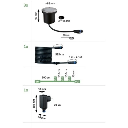 Paulmann LED-Outdoor-Bodeneinbaustrahler Floor Plug & Shine 3 Stk Ø 9,8 Cm