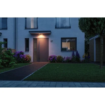 Die smarte Paulmann LED-Outdoor-Deckenleuchte Circula 230 V ZigBee mit Sensor Anthrazit überzeugt durch ihr modernes Design und leuchtet den Eingangsbereich lichtstark aus. Ob an der Wand oder an der Decke, die Circula trägt zur besseren Orientierung in der Dunkelheit bei und sorgt für mehr Sicherheit. Die Tunable-Warm-Funktion bietet freie Wahl bei der Farbtemperatur im Warmlichtbereich. Über die Zigbee-Funktion kann die Farbtemperatur zwischen 2.200 Kelvin und 3.000 Kelvin eingestellt werden. In der Grundeinstellung schaltet sich die Leuchte dank des integrierten Dämmerungssensors bei Dunkelheit mit 20% Helligkeit und 2.200 Kelvin ein. Die gewünschte Lichtfarbe und Helligkeit können individuell per APP angepasst werden. Sobald sich jemand annähert, wird das Außenlicht durch den verbauten Bewegungsmelder auf 100 % Helligkeit und 3.000 Kelvin geschaltet. Nach etwa 30 Sekunden wird wieder auf die gespeicherte Lichtfarbe und Helligkeit zurückgeschaltet. 2.200 Kelvin liegen außerhalb des sichtbaren Bereiches für die meisten Insekten, somit werden diese nicht von der zusätzlichen Lichtquelle angezogen und die Leuchte ist damit besonders insektenfreundlich. Zigbee ist ein Funkübertragungsprotokoll, das Geräte verschiedener Hersteller miteinander vernetzt. Nutzbar mit Smart Home Gateways, die über eine Zigbee Schnittstelle verfügen.