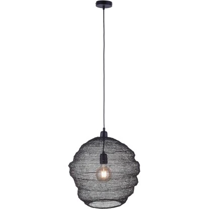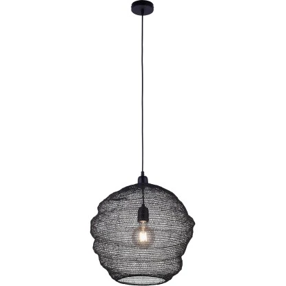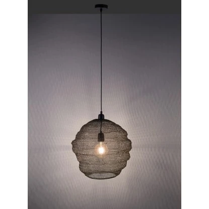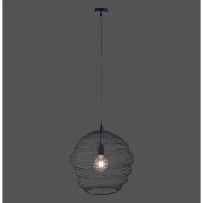 Die schwarze Pendelleuchte Kokon wird mit einem hübschen Metallnetz-Lampenschirm komplettiert. Der Lampenschirm ist leicht flexibel und man kann ihn nach Wünschen ein wenig formen. Durch den Lampenschirm gibt die Deckenlampe ein besonderes Lichtspiel wieder.