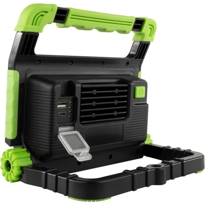 Die kabellose REV Ritter Akku-LED-Arbeitsleuchte Spot Green überzeugt durch ihre kompakte und stabile Bauform aus robustem Kunststoff. Die energieeffiziente LED-Technologie des Strahlers bietet eine nachhaltige und lange Lebensdauer. Der ausrichtbare Scheinwerfer hat eine effektive Leuchtkraft in einem tageslichtweißen Licht. Mit einem effizienten Akku ausgestattet sorgt der flexible Strahler überall dort für Licht, wo keine Steckdose verfügbar ist. Der Arbeitsstrahler ohne Kabel ist universell einsetzbar und somit das ideale Gerät für Arbeit, Hobby und Camping. Durch den stabilen Standfuß wird ein sicherer und fester Stand gewährleistet. Der Strahler ist sowohl für die Anwendung im Haus als auch für den Einsatz im Freien konzipiert. Er ist sehr einfach handzuhaben und leicht zu transportieren. Im Lieferumfang befindet sich ein Netzteil und ein USB Kabel zum Aufladen.