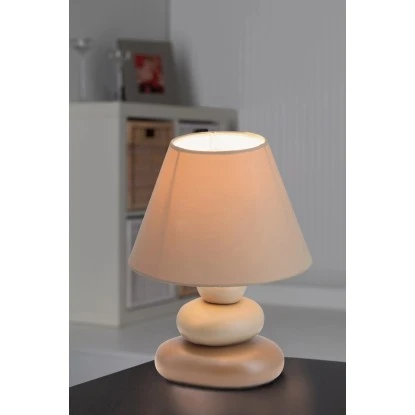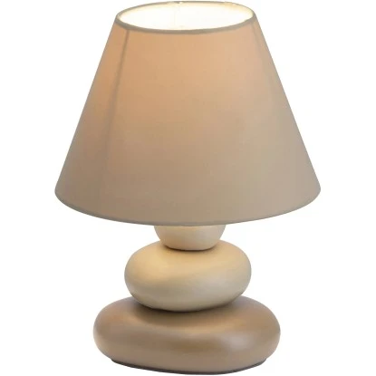 Die Tischleuchte Paolo besticht durch ihr modernes Design in Steinoptik. Die symmetrisch angeordneten und farblich abgestimmten Steine werden durch den unifarbenen Lampenschirm akzentuiert und machen diese Tischleuchte zu einem dekorativen Blickfang in Ihren Räumen.