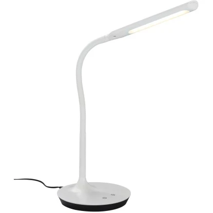 Die LED-Tischleuchte Polo zeichnet sich besonders durch ihr schlankes Erscheinungsbild aus. Sie wurde aus Kunststoff gefertigt und hat die Farbe Weiß. Die Höhe der Leuchte beträgt 41 Zentimeter. Das fest verbaute LED-Leuchtmittel hat 5 Watt. Die Lichtfarbe ist einstellbar von 3000 bis 5000 Kelvin. Ebenso verfügt diese Tischleuchte über einen 4-Fach Touch, mit welchem sich die Leuchte bequem und einfach dimmen lässt.