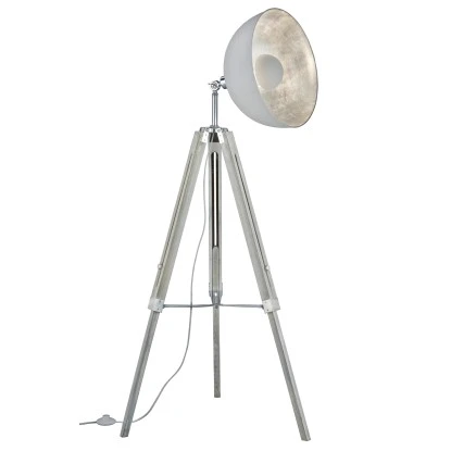 Die Trio Stehleuchte Liège fällt durch ihr raffiniertes und stylisches Design auf. Ob als dekorative Lichtquelle in der Ecke oder neben einer gemütlichen Sitzgelegenheit platziert, verleiht sie jedem Wohnbereich einen schicken Retro-Look. Der runde Leuchtenschirm aus Metall mit einem Durchmesser von 41 cm verteilt das Licht gleichmäßig im Anwendungsbereich. Der Lampenfuß in Stativform ist aus Naturholz gefertigt und von 120 cm bis 160 cm höhenverstellbar. Die Position des Leuchtenkopfes lässt sich in ihrer Neigung verstellen.
