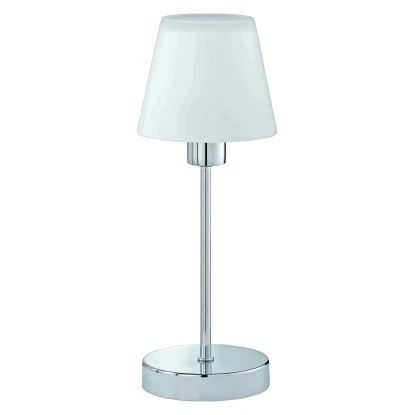 Mit dieser eleganten Tischleuchte setzen Sie gezielt Akzente in Ihrem Zuhause. Die Leuchte überzeugt durch eine Kombination aus Chrom und satiniertem Glas.